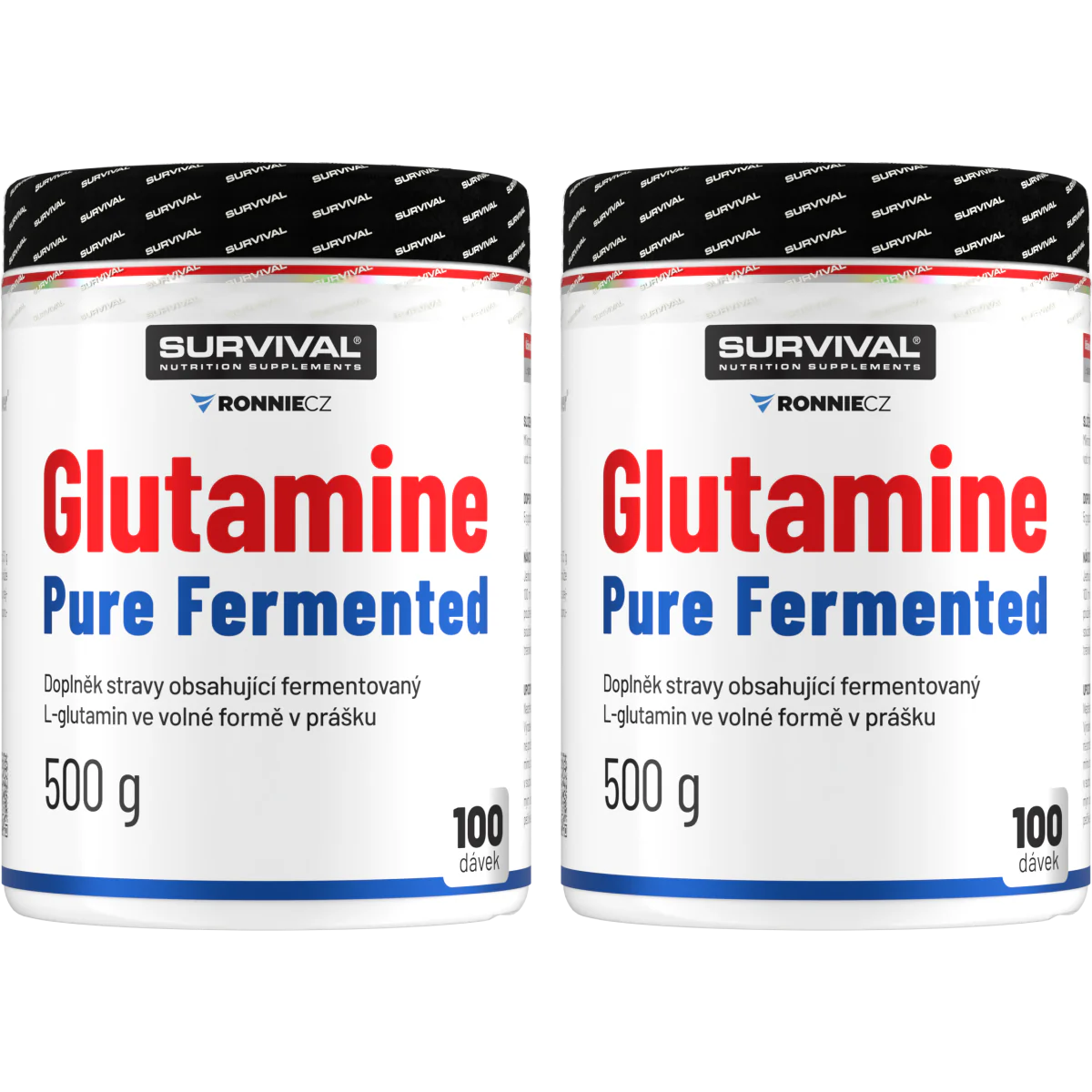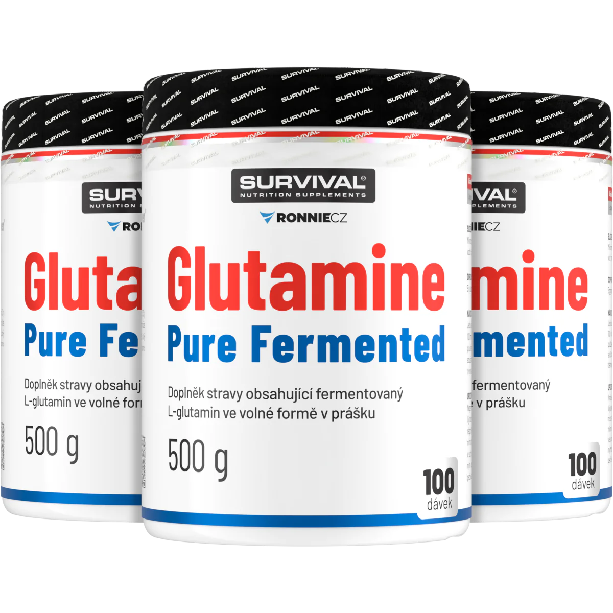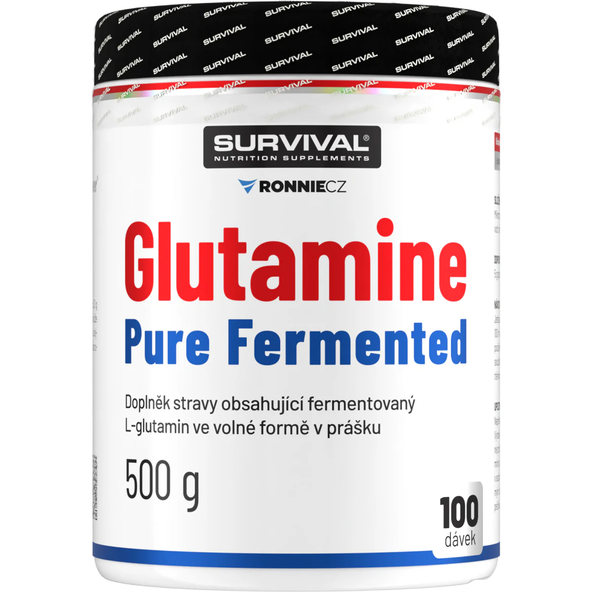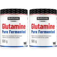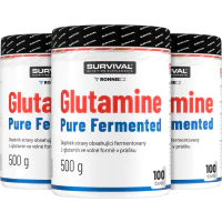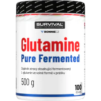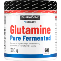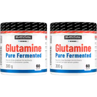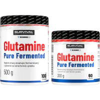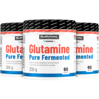 Glutamine Pure Fermented značky Survival nabízí 500gramové a/nebo 300gramové cenově velmi výhodné balení volné formy této semiesenciální aminokyseliny, kterou je zvlášť vhodné používat bezprostředně po tréninku a také večer před spaním. Lze používat v kombinaci s jinými doplňky sportovní výživy.
