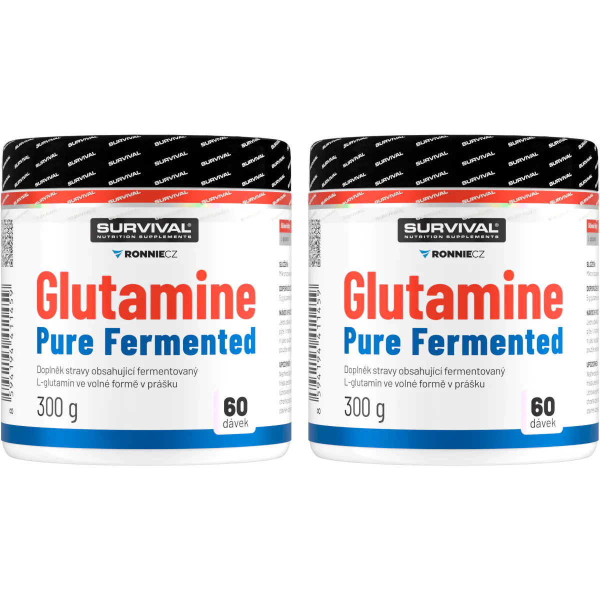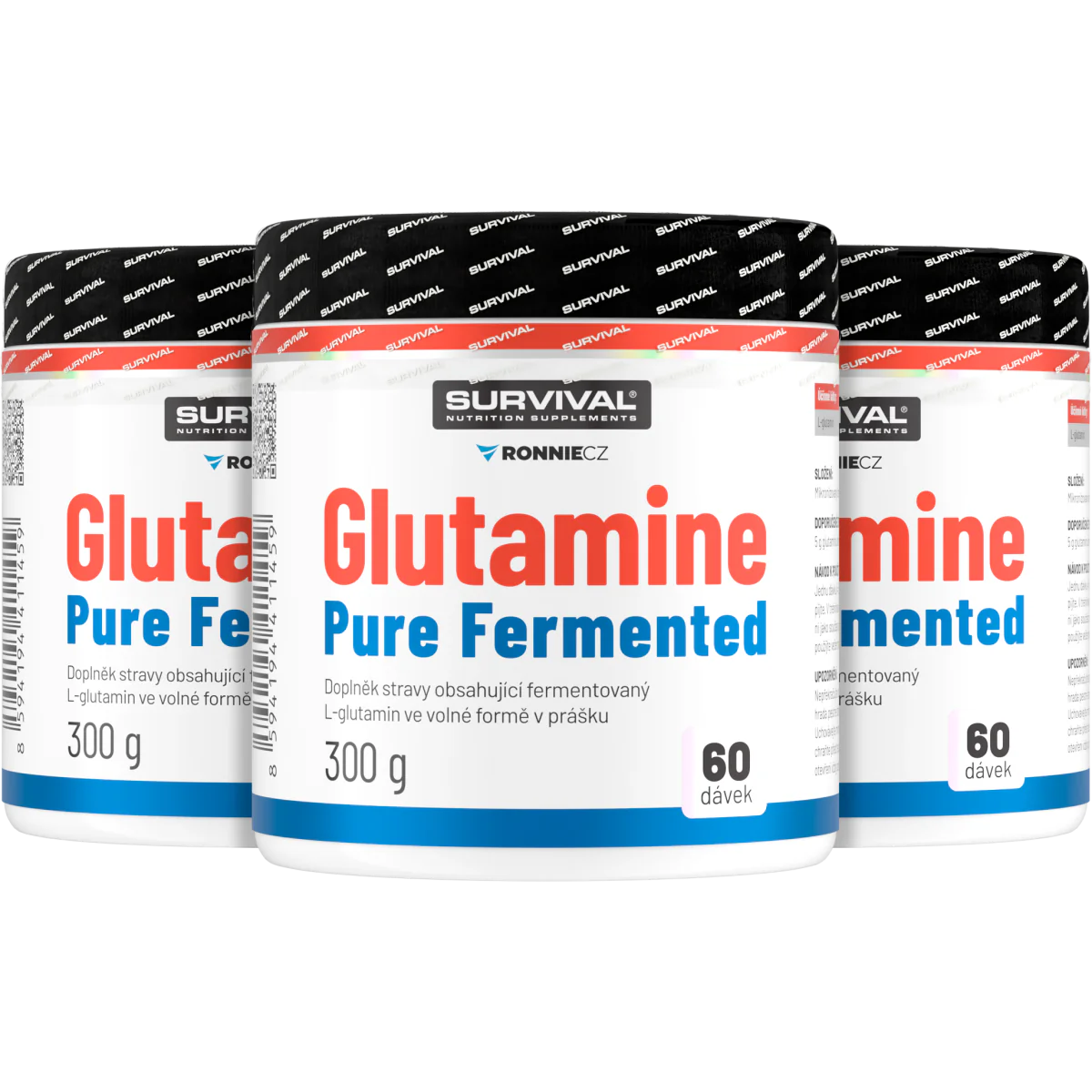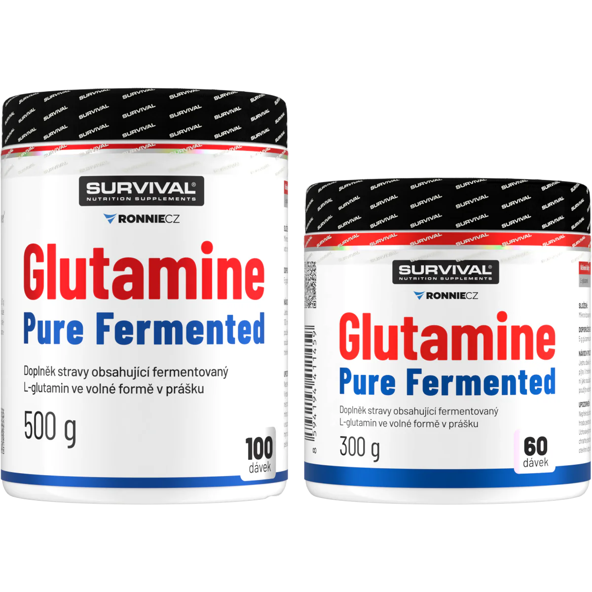 Glutamine Pure Fermented značky Survival nabízí 500gramové a/nebo 300gramové cenově velmi výhodné balení volné formy této semiesenciální aminokyseliny, kterou je zvlášť vhodné používat bezprostředně po tréninku a také večer před spaním. Lze používat v kombinaci s jinými doplňky sportovní výživy.