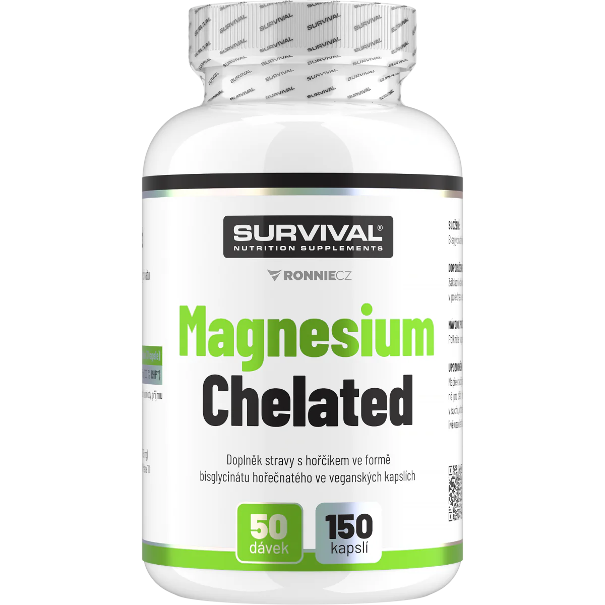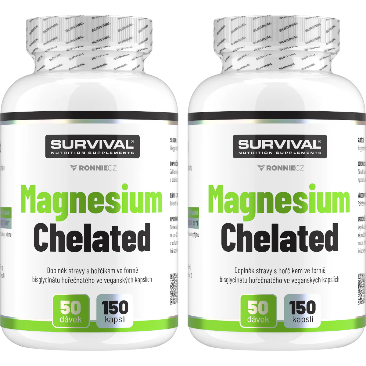 V čem je Magnesium Chelated od Survivalu nyní ještě lepší? Od podzimu 2024 mají kapsle zesílené složení (dříve bylo v jedné kapsli cca 94 mg hořčíku ve formě bisglycinátu, nyní je to 125 mg hořčíku ve stejně vysoce účinné formě), k dosažení celé denní doporučené dávky Vám tak nově stačí jen 3 kapsle. Ty navíc už nejsou želatinové, ale rostlinné, a tedy i veganské. A protože je i samotný bisglycinát hořečnatý rostlinného původu, je celý produkt vhodný mimo jiné právě i pro vegany.