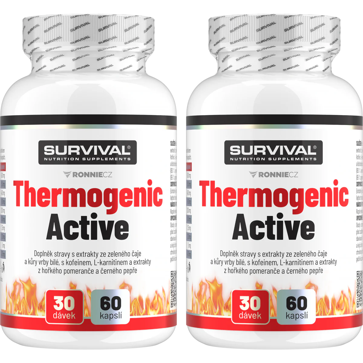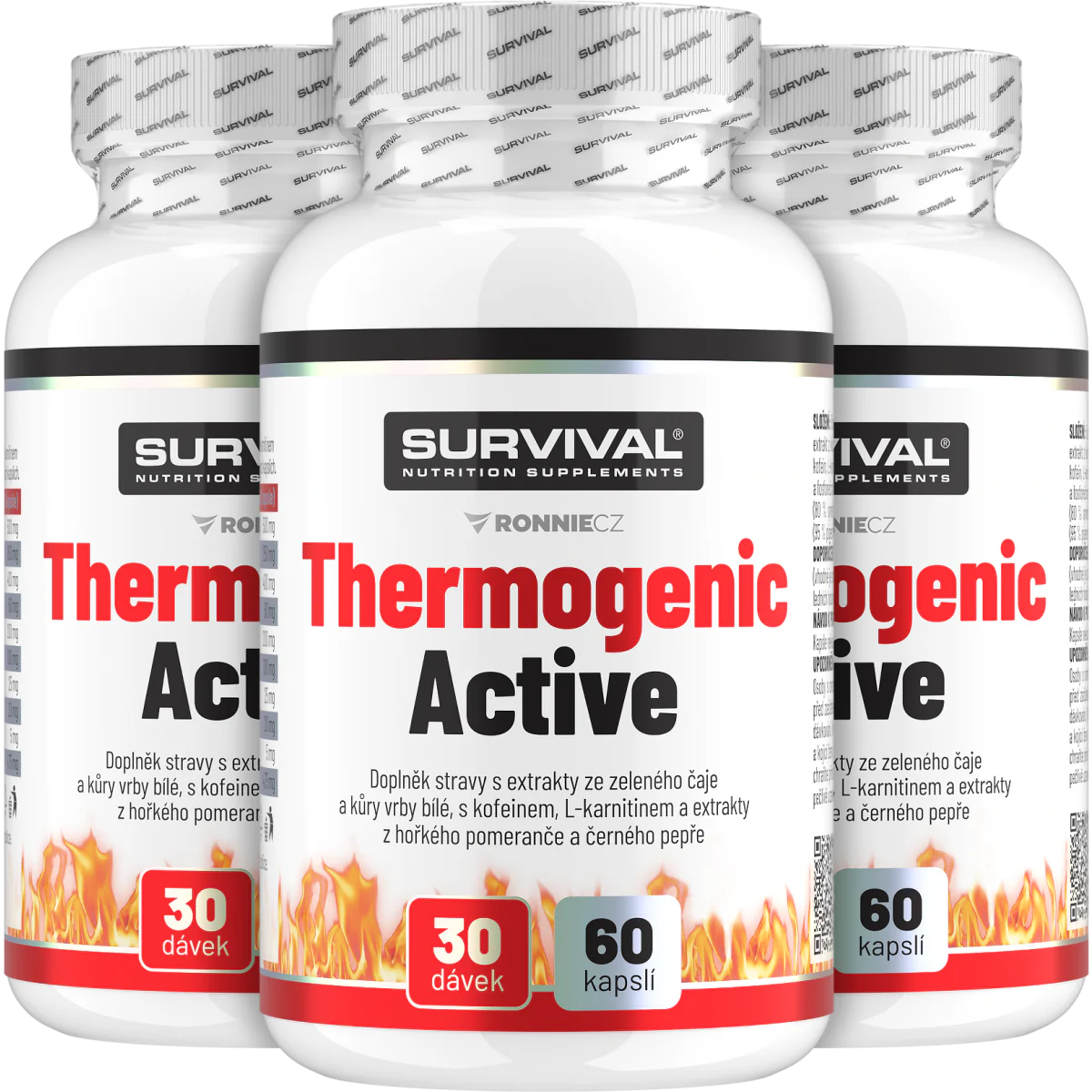 Thermogenic Active je vysoce účinný produkt do redukčních diet s nejprověřenější kombinací účinných látek - synefrinu, kofeinu a kůry vrby bílé, doplněný o vysokou dávku extraktu zeleného čaje a L-karnitin. Účinnost celé kombinace zvyšuje BioPerine zlepšující vstřebatelnost živin až o 30 %. Thermogenic Active obsahuje v denní dávce dvou kapslí maximální hodnoty hlavních účinných látek. Je vhodný pro všechny fyzicky aktivní lidi, kteří se právě nacházejí v období redukce hmotnosti či finálního rýsování. Navíc je ve veganských kapslích.