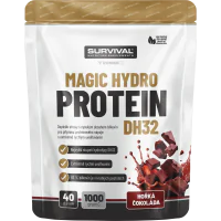 Magic Hydro Protein DH32 je doplněk stravy s extrémně rychlým uvolňováním bílkovin a s téměř absolutní využitelností, Vaše tělo z něj zužitkuje nejvyšší možný podíl bílkovin v porovnání se všemi běžnými proteiny. Magic Hydro Protein má nejvyšší stupeň hydrolýzy DH32, více než 80 % bílkovin je tedy tvořeno krátkými peptidy, a proto jediný typ produktu, se kterým snese srovnání, jsou čisté volné aminokyseliny - avšak v tomto případě jsou ve výrazně vyšších dávkách a díky specifickému transportu je vstřebávání krátkých peptidů dokonce rychlejší než přenos samotných aminokyselin.