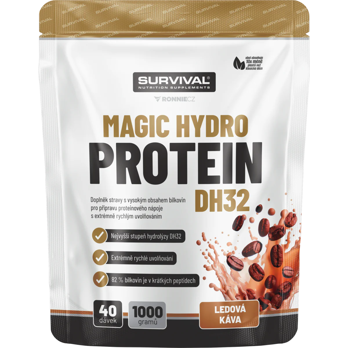 • Magic Hydro Protein DH32 má ještě jeden milý bonus navíc, neobsahuje žádné emulgátory. Proteinové suplementy zpravidla obsahují drobný přídavek buď slunečnicového, nebo sójového lecitinu, které pomáhají snadné rozpustnosti. Zde použitý enzymaticky štěpený syrovátkový proteinový koncentrát ale tyto přídatné látky neobsahuje - a i tak je díky způsobu zpracování rychle a snadno rozpustný!